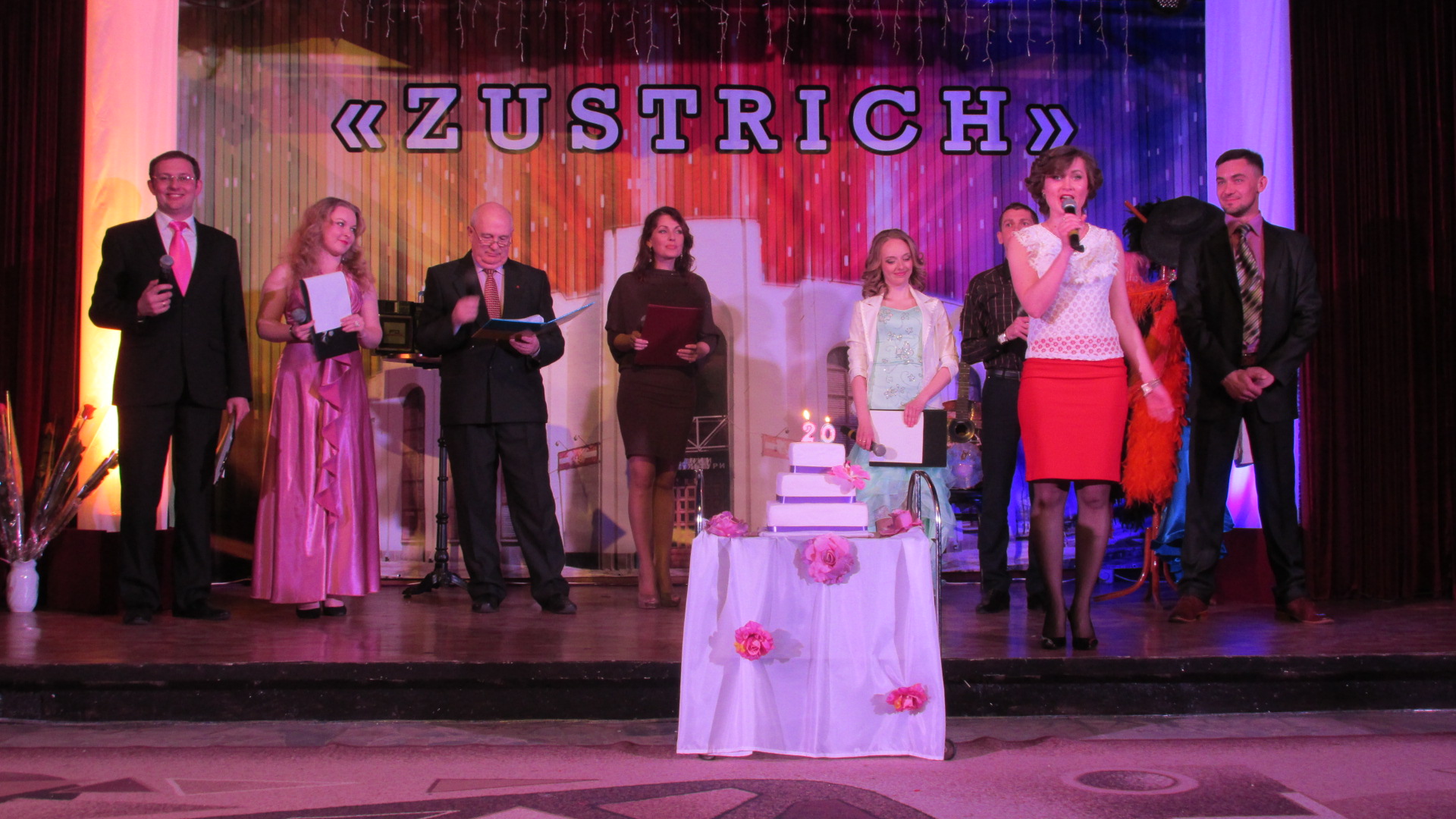 Уcіх присутніх з ювілеєм закладу привітав директор НЦК «Зустріч» Олександр Івановський, від відділу культури і туризму міської ради – начальник відділу Антоніна Курило, яка вручила подяки за сумлінну багаторічну працю та вагомий внесок у розвиток культури Олені Левченко, Оксані Чирці, Юрію Дорошенку, Надії Кононенко, Софії Пурденко, Любові Орловій, Андрію Іващенку та великий святковий торт всьому колективу.