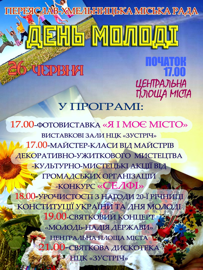 Шановні переяславці! Запрошуємо Вас на святкування Дня молоді та урочистості з нагоди 20-ї річниці Конституції України!