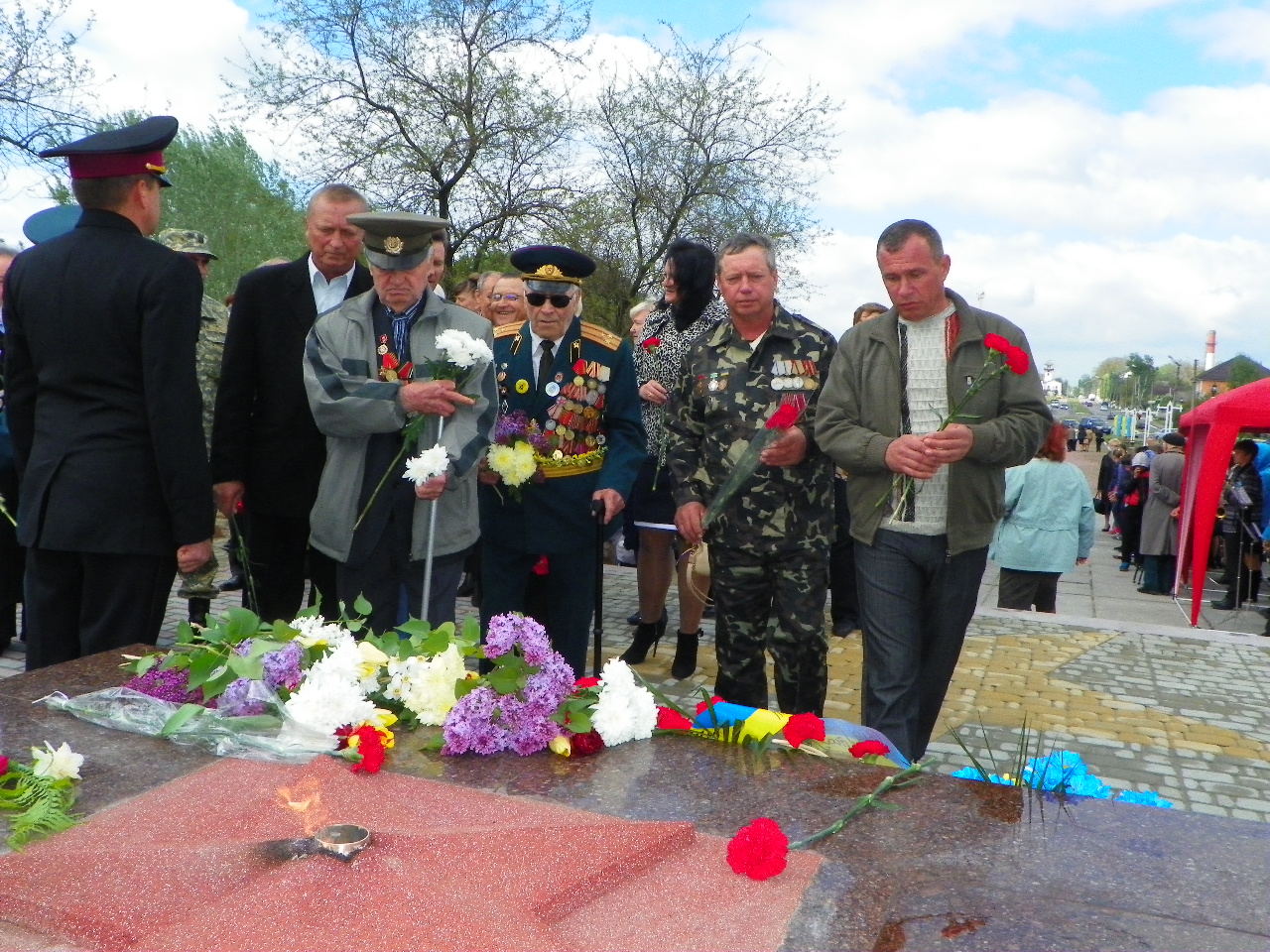 08 травня в місті Переяславі-Хмельницькому на Кургані Слави відбувся мітинг до Дня пам’яті та примирення, 70-ої річниці Перемоги над нацизмом у Європі і завершення Другої світової війни. До оновленого після капітальної реконструкції пам’ятного знака та до стел із прізвищами жертв війни - жителів Переяславщини прийшли ветерани, представники міської та районної влади, колишні міські голови, колективи підприємств, установ, організацій, представники громадських організацій, «Асоціація учасників бойових дій та учасників антитерористичної операції Переяславщини», Спілки воїнів-інтернаціоналістів, «Правий сектор Переяслава», шкільна молодь. У багатьох присутніх на грудях були квіти маку – європейського символу пам’яті жертв війни. Зі словами вдячності до ветеранів звернулися міський голова Тарас Костін, голова Переяслав-Хмельницької райдержадміністрації Григорій Дубина, виконуючий обов’язки голови районної ради Іван Бугаєнко. Школярі вручили ветеранам букети весняних квітів, присутні вшанували пам’ять жертв війни хвилиною мовчання, салютна група дала трикратний залп. У виконанні оркестру духових інструментів дитячої музичної школи імені Павла Сениці під керівництвом Ігоря Гаврилюка прозвучали твори військової тематики. Учасники мітингу вклонились загиблим на фронтах землякам, поклали до Вічного вогню та меморіалу корзини з квітами. По завершенню мітингу ветерани у супроводі міського голови та голови райдержадміністрації продовжили відзначення пам’ятної, поклавши квіти до пам’ятних знаків героям Букринського плацдарму та морякам Дніпровської флотилії, вшанувавши загиблих визволителів.