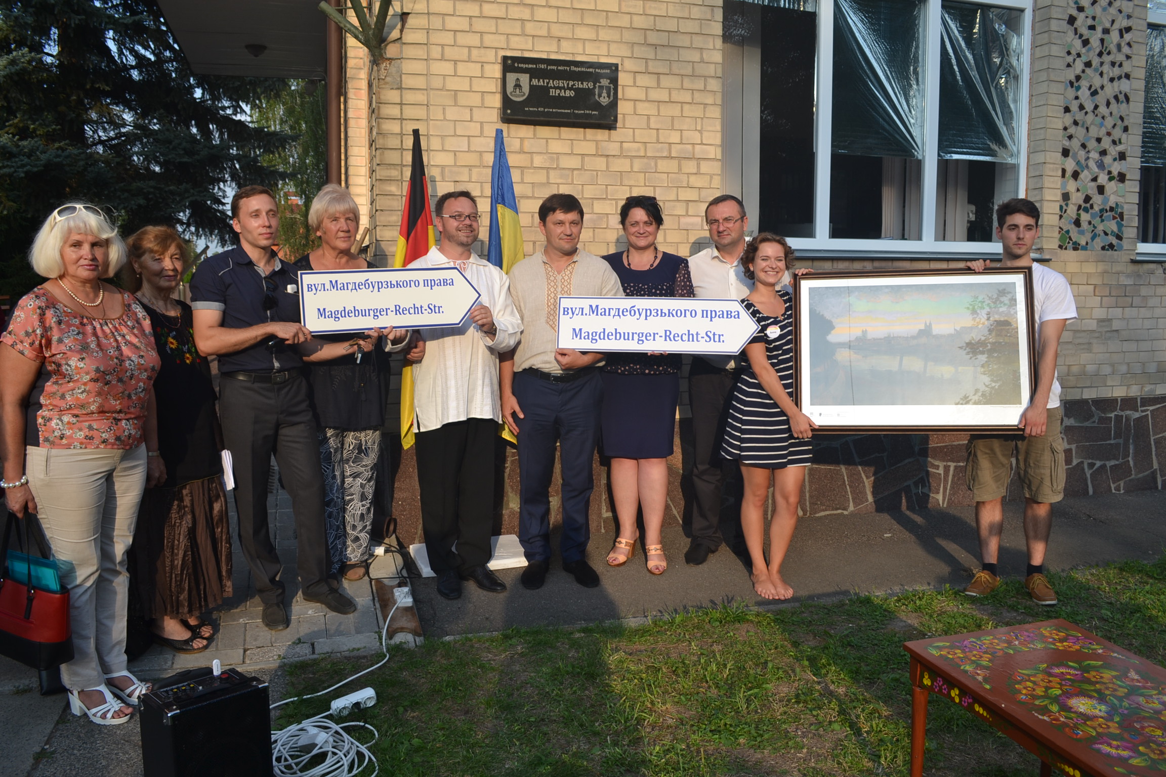 Майк Райхель подарував міській раді велику панорамну картину з міста Магдебург та вуличні таблички українською та німецькою мовами. До Дня міста Переяслава-Хмельницького такі вуличні таблички будуть прикріплені на всіх приміщеннях по вулиці Магдебурзького права.