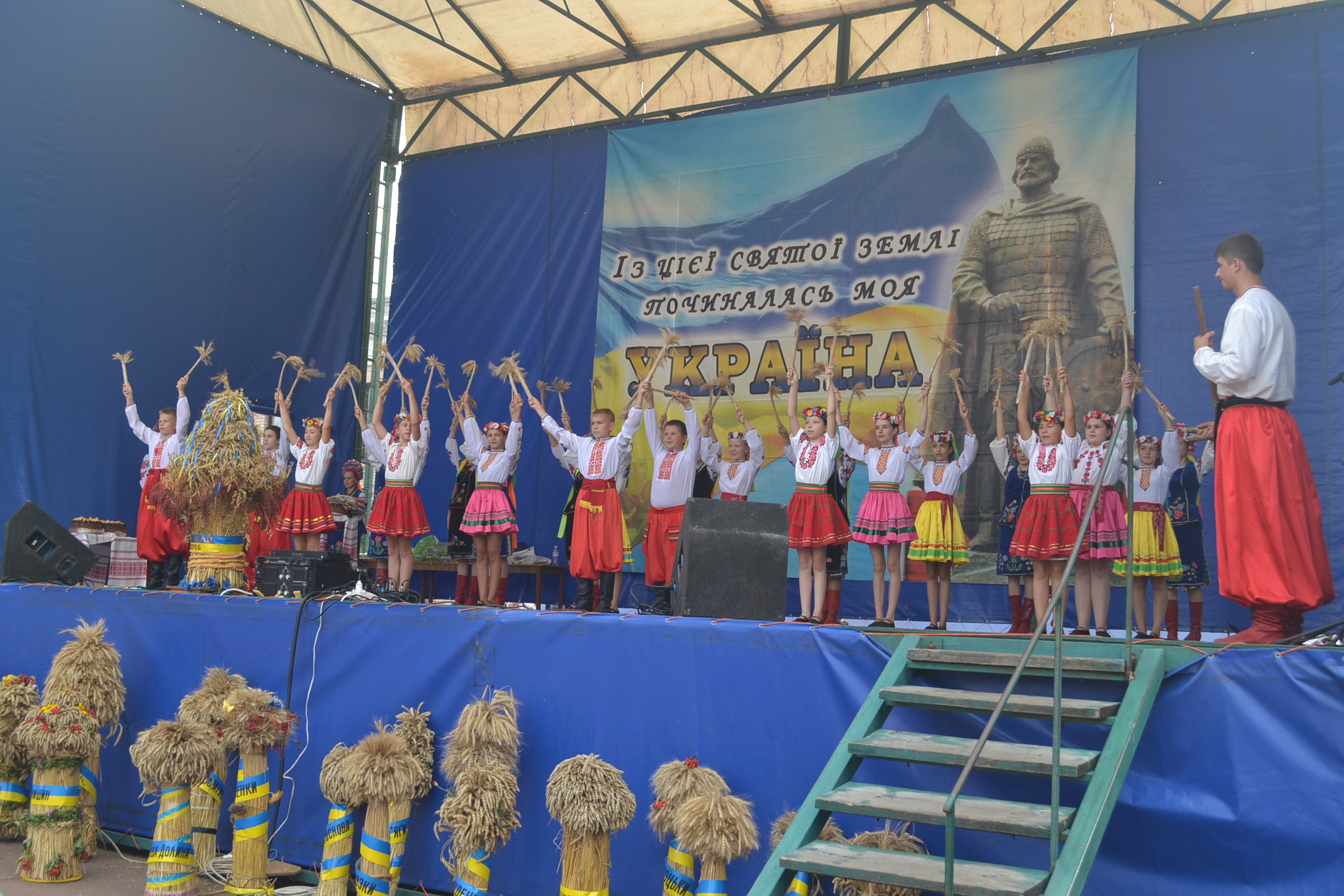 З головної сцени Переяслава громаду привітали міський голова Тарас Костін, голова райдержадміністрації Андрій Пряхін та голова районної ради Петро Качкалда.