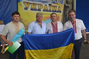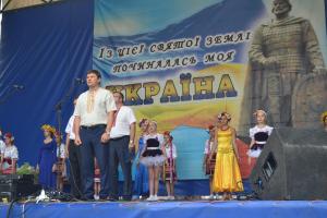 По периметру площі розташувалися святково прикрашені намети міських підприємств та сільських громад району. О 13 годині під звуки фанфар на площу виносять десятиметрове полотнище Державного прапора України. Право підняти Державний прапор було надано чемпіонці України, призерці міжнародних змагань зі штовхання ядра Тетяні Кравченко з села Чирське та майстру спорту із легкої атлетики, вчителю фізкультури міської ЗОШ №5 Дмитру Бондарєву.