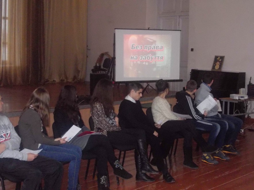 28 листопада у міській ЗОШ І-ІІІ ст.. №1 відбувся виховний захід «Скорботний біль і пам’ятка живим», присвячений вшануванню пам’яті загиблих від голоду в 1933 році. Старшокласникам було запропоновано переглянути документальні відеоматеріали, що дали змогу показати жорстокі факти із життя українського народу. Учні 10-го класу розповіли про масштаби трагедії, читали вірші відомих поетів про голодомор. В уяві кожного із присутніх постали опухлі і змучені від голоду діти, люди похилого віку. Емоції суму, жалю та співпереживання переповнювали серця учнів. Хвилиною мовчання усі вшанували душі померлих від голоду.