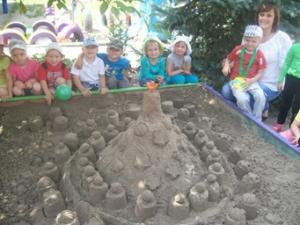 , де діти, як справжні скульптори, створювали піщані споруди. Чого тут тільки не було: барвистий метелик, морський краб, чарівний палац, човник, пальма з черепахою, і підводне королівство Золотої рибки.