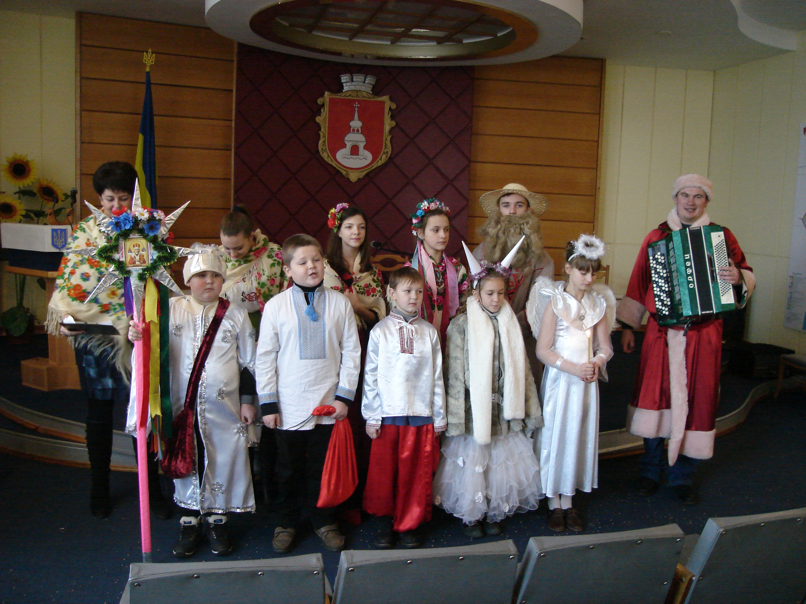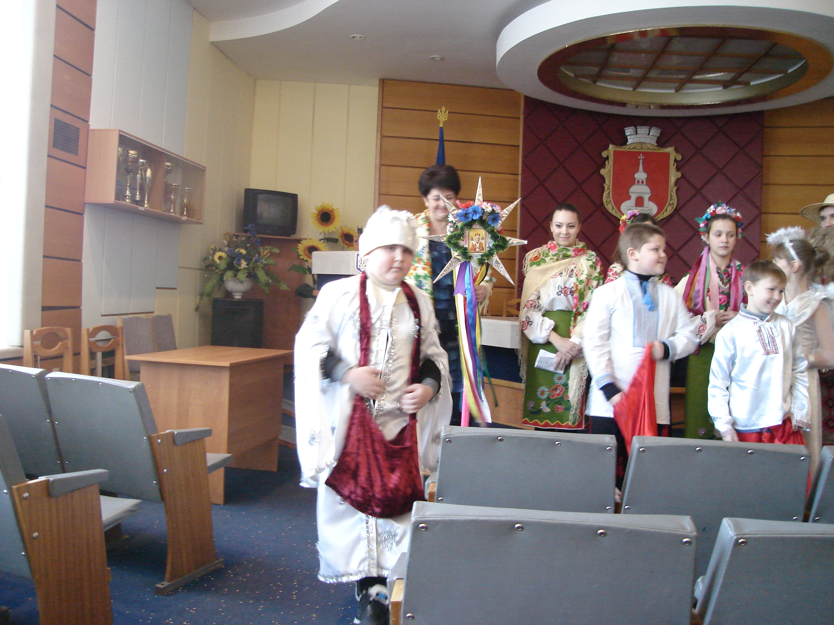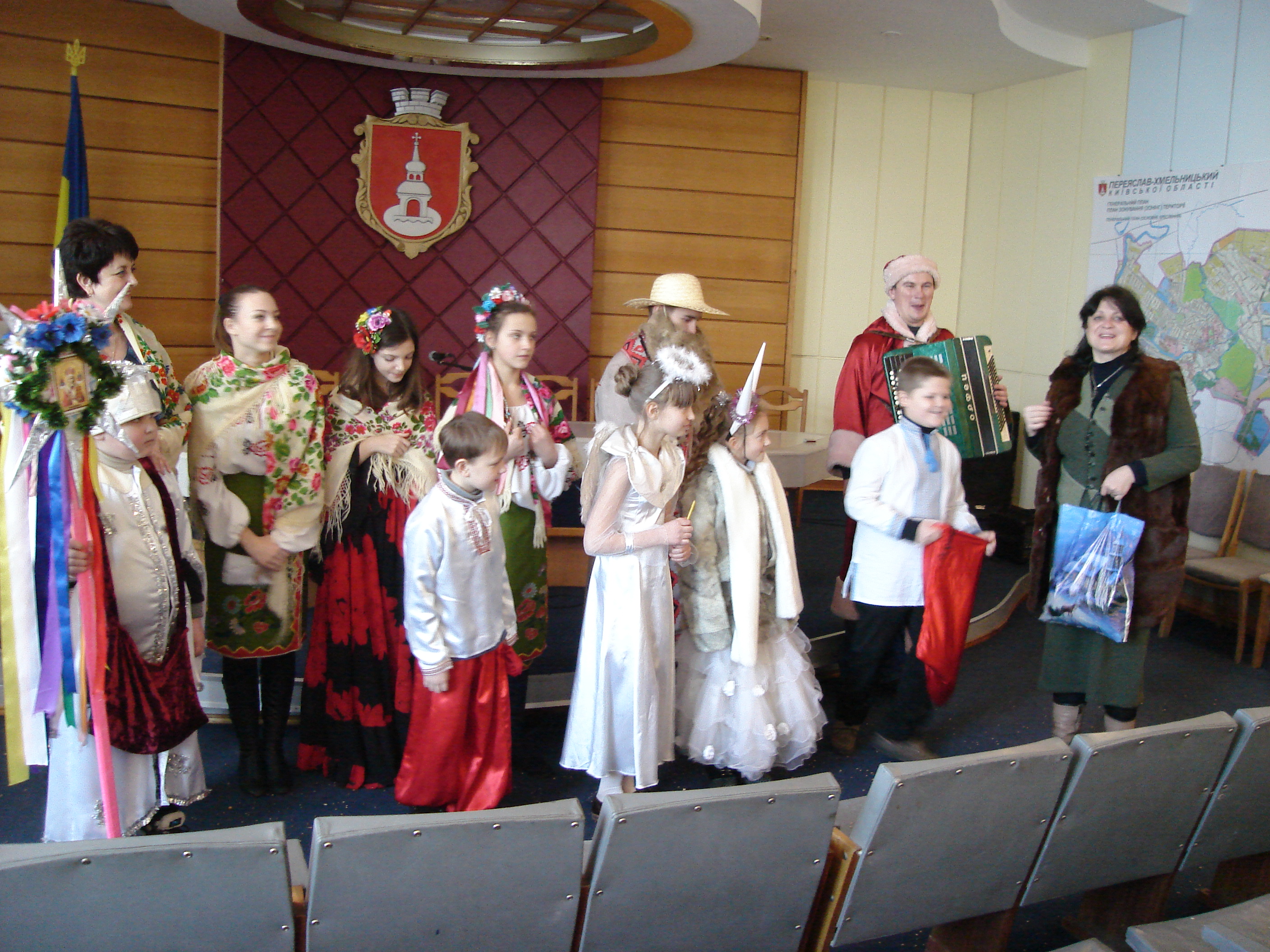 14 січня учні міських загальноосвітніх шкіл І-ІІІ ст.. № №7 та № 1 зі своїми вчителями прийшли привітати з новорічно-різдвяними святами працівників виконкому Переяслав-Хмельницької міської ради. Надзвичайно зворушливо та щиро звучали у їх виконанні віншування, святкові пісні, колядки та щедрівки, побажання удачі, доброго і мирного нового року. Приємно, що українські традиції продовжують жити, передаються із покоління в покоління. Заступник міського голови Валентина Губенко від імені присутніх подякувала віншувальникам та вручила їм солодкі подарунки.